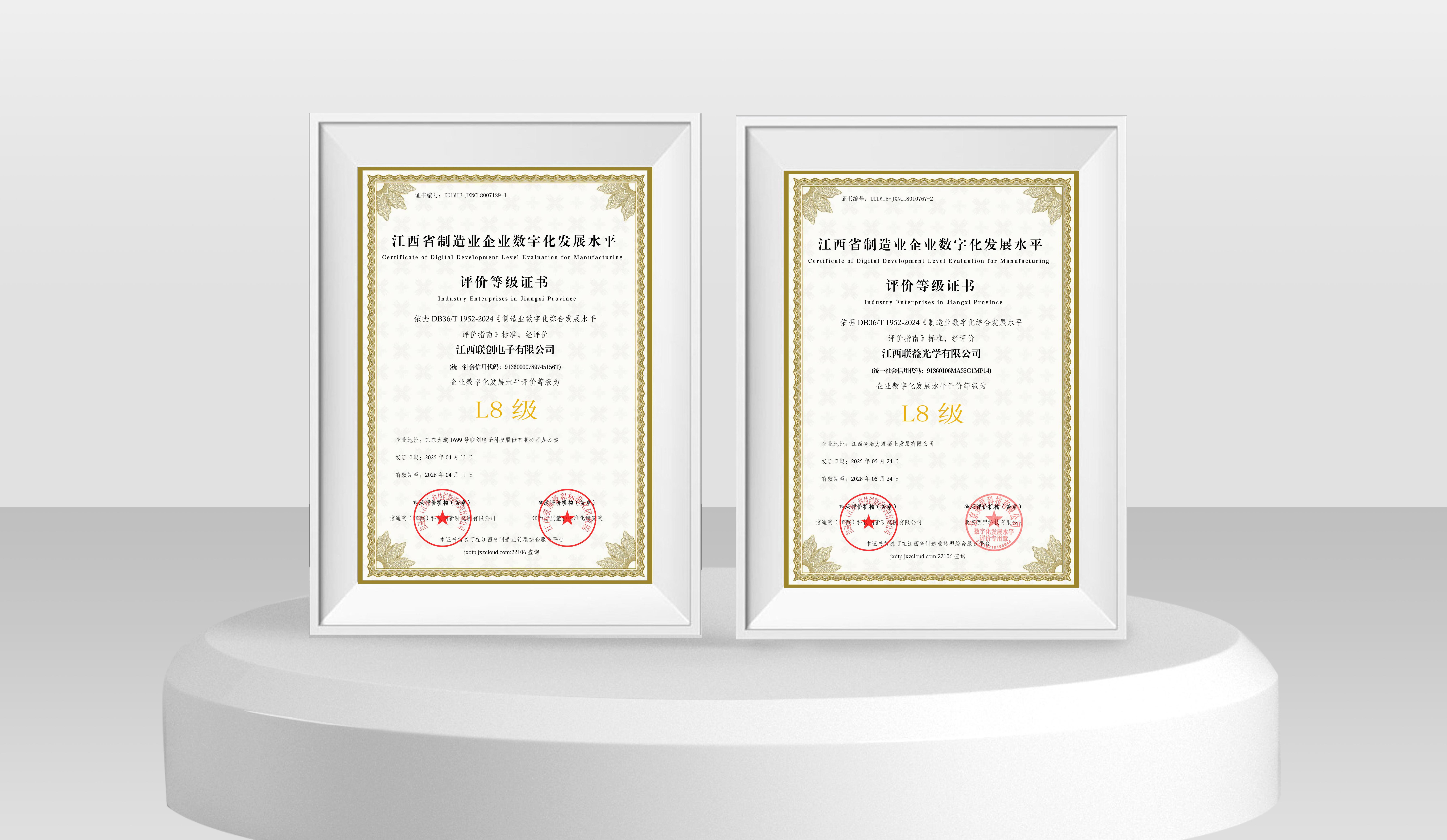 近日,联创电子科技股份有限公司旗下AG电子,AG真人平台(以下简称江西联创)与江西联益光学有限公司(以下简称江西联益)凭借深度集成与创新应用能力,在江西省制造业企业数字化发展水平等级评价中双双达到L8级水平,标志着两家企业在数字化转型领域已跻身全省“集成提升阶段”最高水平,为全省制造业智能化升级树立新标杆。